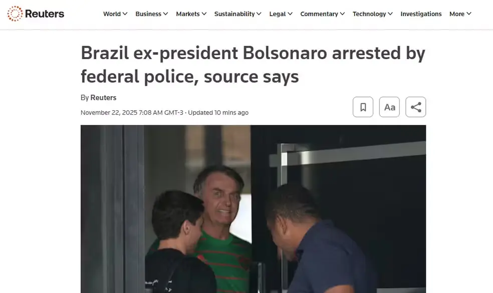 A agência Reuters descreveu a medida como “um movimento significativo” às vésperas do trânsito em julgado da condenação na Ação Penal 2668. Segundo a agência, a prisão deve ampliar a polarização no país e mobilizar tanto apoiadores quanto críticos de Bolsonaro.