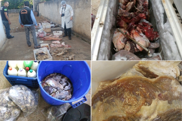 As carnes eram oriundas de abate clandestino e comercializadas sem inspeção, sem rotulagem, com prazo de validade vencido e fora dos padrões de higiene.