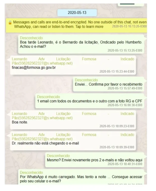 O MPGO aponta que o grupo acertou a fraude antes mesmo da licitação ser aberta. Em 13 de maio de 2020, os envolvidos já discutiam valores e condições, embora o processo (Dispensa de Licitação nº 184/2020) só tenha sido formalizado no dia seguinte.