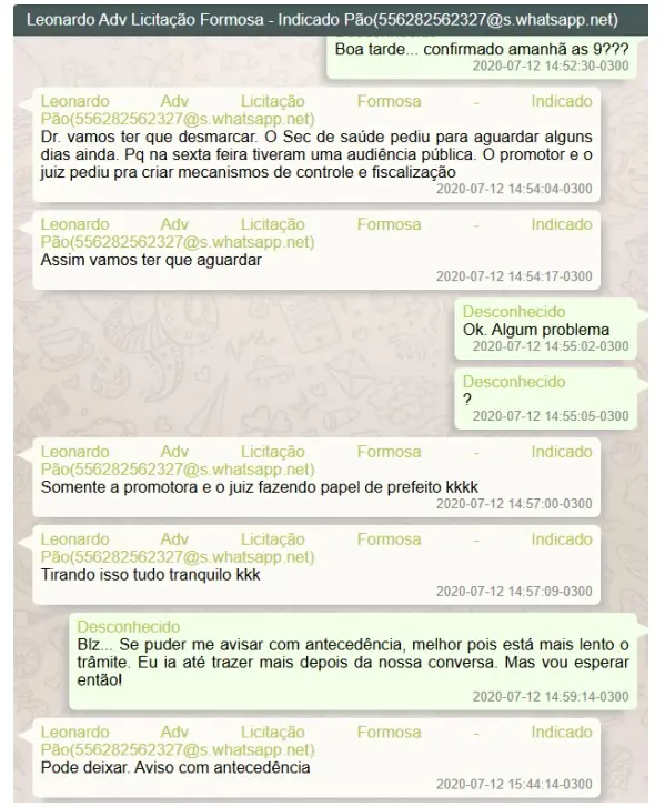 O MPGO aponta que o grupo acertou a fraude antes mesmo da licitação ser aberta. Em 13 de maio de 2020, os envolvidos já discutiam valores e condições, embora o processo (Dispensa de Licitação nº 184/2020) só tenha sido formalizado no dia seguinte.