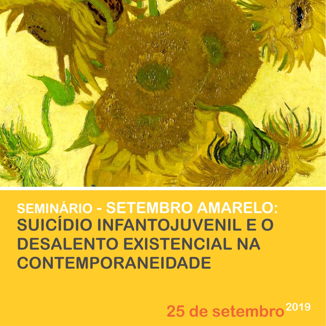 O Ministério Público de Goiás (MPGO) realiza, na próxima quarta-feira, 25, às 8h30, o seminário “Setembro Amarelo: suicídio infantojuvenil e o desalento existencial na contemporaneidade”. O evento, que ocorre no auditório do edifício-sede da instituição no Jardim Goiás, em Goiânia, é transmitido também pelo canal da Escola Superior do Ministério Público de Goiás (Esump) no YouTube.