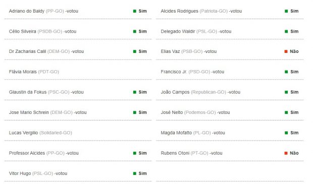 Além de Calil, votaram pela aprovação Adriano do Baldy (PP), Célio Silveira (PSDB), Glaustin da Fokus (PSC), Jose Mario Schreiner (União Brasil), Professor Alcides (PP), Vitor Hugo (PSL), Alcides Rodrigues (Patriota), Delegado Waldir (União Brasil), Francisco Júnior (PSD), João Campos (Republicanos), José Nelto (Podemos) e Magda Mofatto (PL). Apenas Elias Vaz (PSB) e Rubens Otoni (PT)) foram contra a ampliação da liberação dos agrotóxicos. “Veneno não mata a fome, mata as pessoas”, justificou o petista. Já Elias alegou que a medida “prejudica a saúde e o meio ambiente”. Não votaram Flávia Morais (PDT) e Lucas Vergílio (Solidariedade).