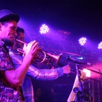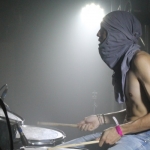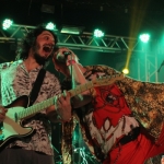 Samuel Mota (guitarra, programações e sintetizadores), Rodrigo Barata (bateria) e Macaxeira Acioli (percussão) subiram ao palco do teatro Yguá 0h38 de domingo (25) e botaram o público para dançar. A banda Muntchako (DF), que faz um show praticamente instrumental, a exceção de poucos versos cantados em uma ou duas músicas, poderia muito bem ser confundida com um grupo do Pará, seja ele de guitarrada, eletrobrega ou tecnobrega. Teve até funk no final do show. “Nós somos o Muntchako e nós somos Fora, Temer”, apresentou Macaxeia a banda ao público.
