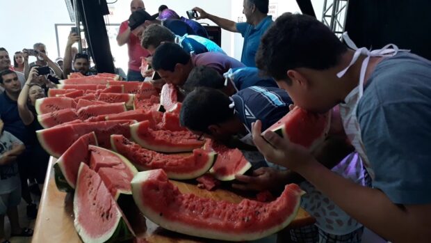 Outro evento que marca a festa é o concurso de quem come mais melancia.