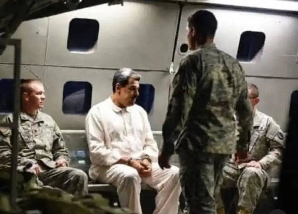 Logo após a captura de Nicolás Maduro, o presidente Donald Trump divulgou, em suas redes sociais, uma foto do ex-ditador usando um moletom cinza da Nike. Para não escutar ou ver o que se passava ao redor, os militares colocaram óculos escuros e um fone de ouvido em Maduro. Na foto, ele aparece algemado, segurando uma garrafa d´água e trajando um conjunto de moletom da loja de esportes.