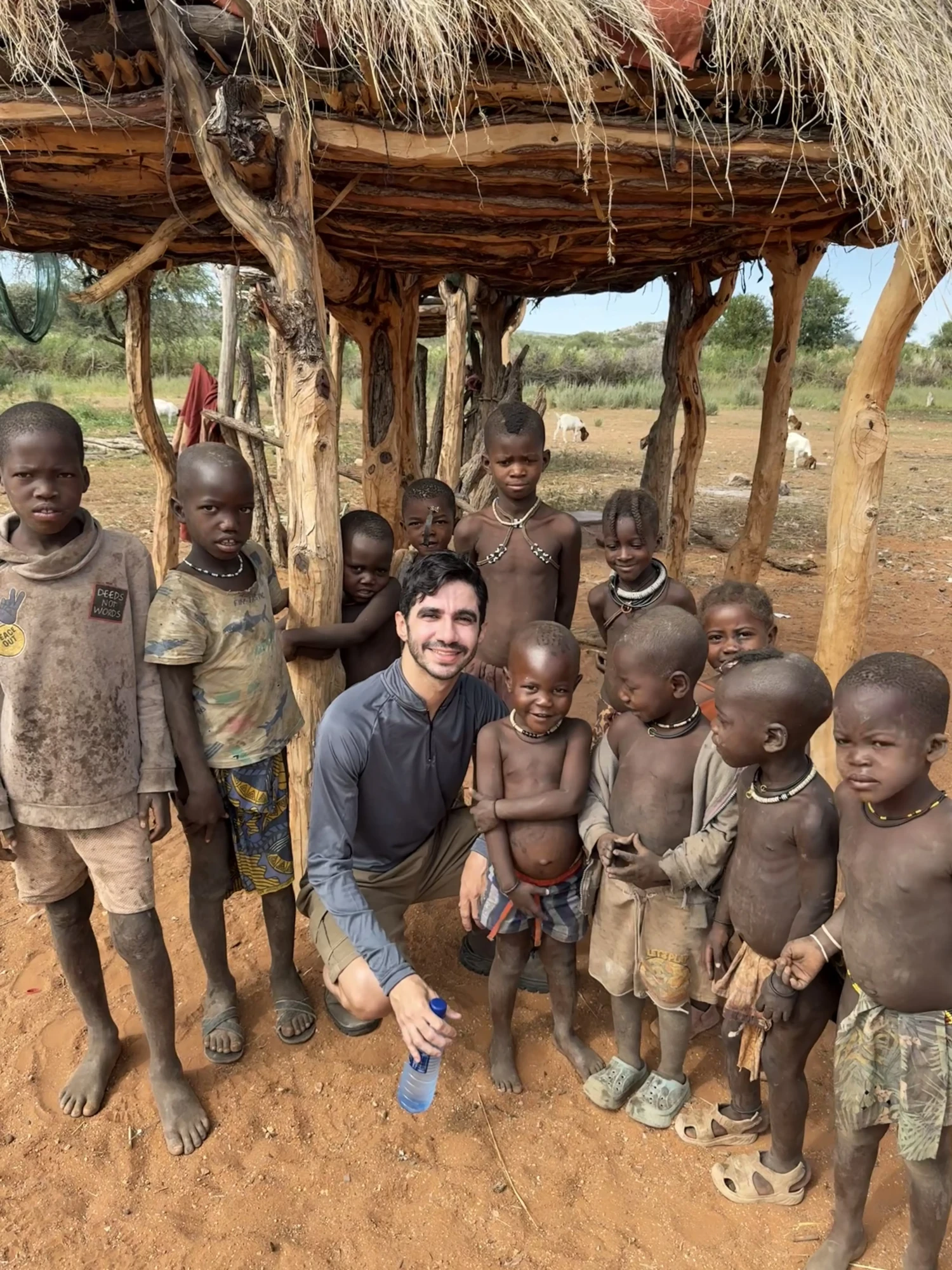 Na manhã de sábado, chego acompanhado de Eric. Somos recebidos antes da entrada da tribo por crianças que nos rodeiam rindo, curiosas. Elas apontam para mim, riem, correm e voltam, ainda mais curiosas.