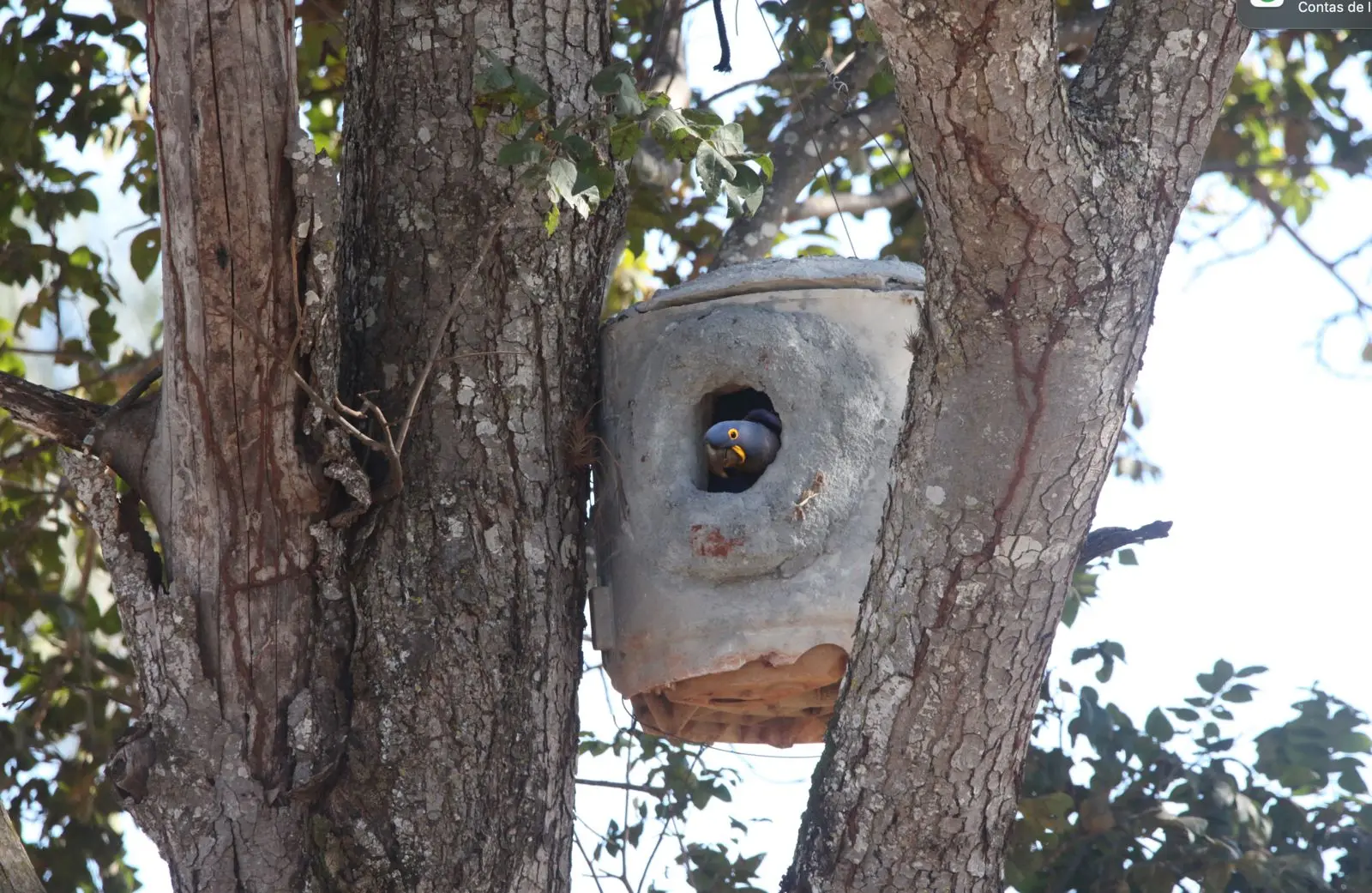 A parceria com Hidasi rendeu mais do que amizade — resultou em uma inovação prática. Inspirado em técnicas observadas nos Estados Unidos, o cientista sugeriu a Nunes a criação de ninhos artificiais acoplados diretamente nas árvores de xixá, espécie essencial para a reprodução da arara-azul.