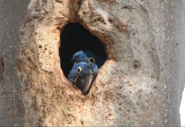 “Há vinte anos, apareceu um casal na Serra Santa Inês. A curiosidade foi grande: o cerrado estava desmatado, as árvores de ninho, como o xixá, tinham sumido, e as fontes de alimento, como a guariroba e o bacuri, estavam quase extintas. Mesmo assim, elas apareceram. Era um sinal.”