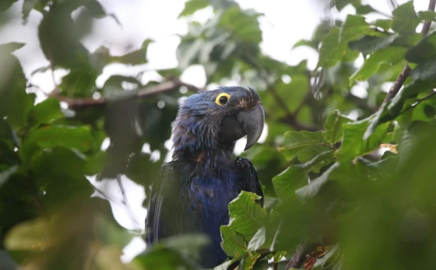Segundo ele, o tom do azul é também um termômetro da saúde das aves. “Quando a cabeça fica branca, é sinal de falta de alimento. Aqui, como ainda temos bacuri e guariroba, elas estão bem nutridas. O azul delas é profundo, vibrante.”