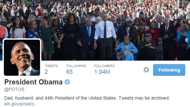 Se definindo como “pai, esposo e 44º Presidente dos EUA”, Obama já tem mais de um milhão de seguidores em menos de um dia. O vice-presidente Joe Biden foi um dos primeiros a dar as boas vindas à Barack Obama: “Ei, @POTUS, bem vindo ao Twitter! Vejo você pela vizinhança”, disse.