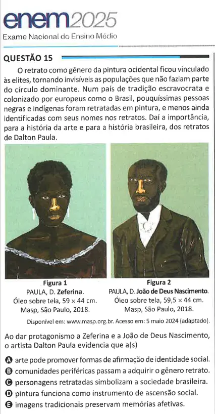 O Enem 2025 trouxe à prova nacional a obra do artista visual Dalton Paula, radicado em Goiânia e reconhecido internacionalmente por retratar personagens negros cujas histórias foram apagadas da memoria oficial brasileira. A aparição do artista no exame reforça o alcance de sua produção e a relevância política e histórica de seus retratos.