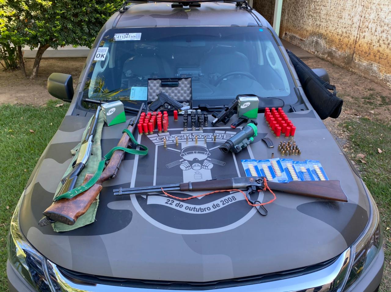 Uma pessoa foi presa em flagrante por porte ilegal de arma de fogo. Além disso, houveram apreensões de armas, munições, dinheiro em espécie e grãos.