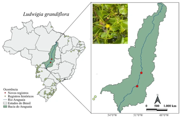 Esse esforço já produz resultados concretos. Um exemplo é o primeiro registro da macrófita aquática Ludwigia grandiflora para a bacia do Araguaia, obtido durante campanhas do programa. Embora a espécie já fosse conhecida em outras regiões do Brasil como no Pantanal, ela permanecia ausente dos registros para o Araguaia devido à falta de coletas sistemáticas. Esse caso ilustra como a expansão do esforço amostral, associada a redes de pesquisa bem estruturadas, preenche lacunas de distribuição das espécies e fortalece a compreensão sobre a biodiversidade da região.