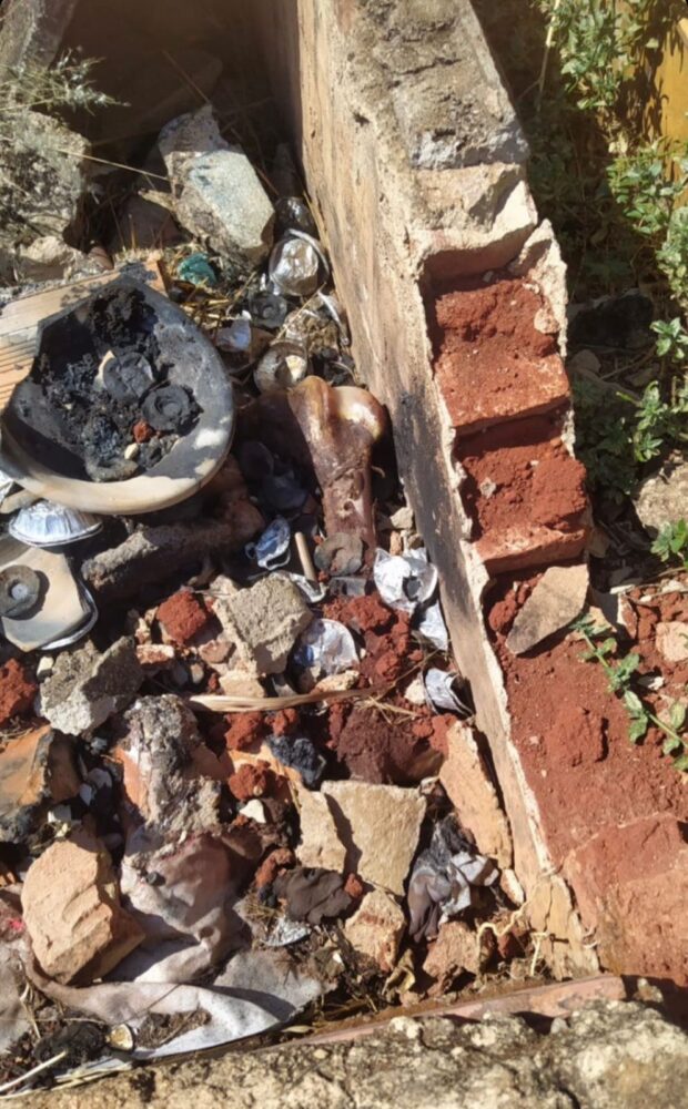 Ossos humanos são vistos espalhados pelo Cemitério Parque, em Goiânia