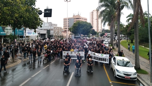 O ato, que levou cerca de mil manifestantes, entre ativos e inativos, até a Praça Cívica, foi organizado pela Associação dos Oficiais de Goiás (Assof), Assego, ACS-GO, para manifestar indignação sobre a divisão do salário dos agentes atuantes e aposentados e pensionistas e, também, do não pagamento da folha salarial de dezembro.