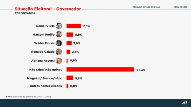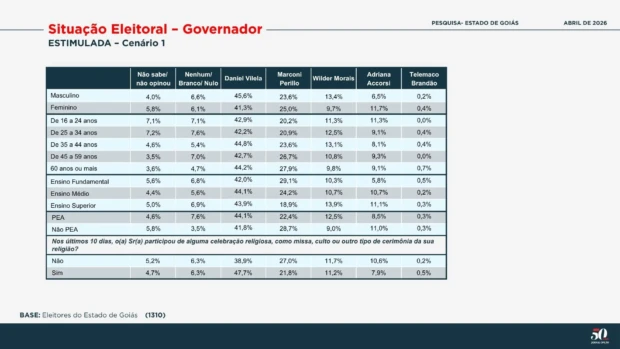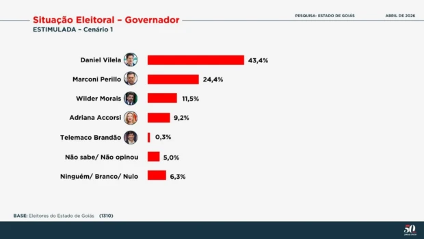 O levantamento da Paraná Pesquisas ouviu 1.310 eleitores em 60 cidades goianas entre os dias 1 a 3 de abril. O grau de confiança é de 95% e a margem de erro é de 2,8 pontos percentuais para mais ou para menos. A pesquisa está registrada no Tribunal Superior Eleitoral com o número GO-09885/2026.