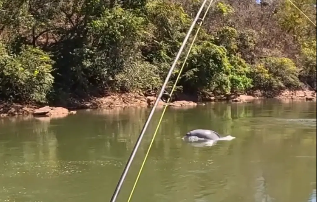 Pescador registra boto no Rio das Almas e faz apelo: “Falta consciência para preservar”, veja vídeo