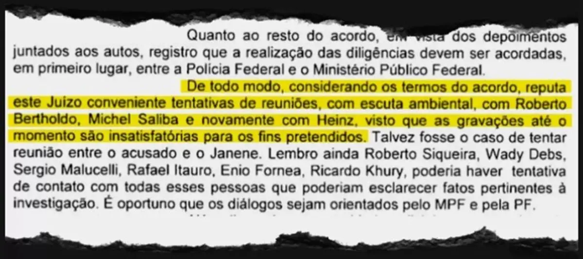 Além do despacho, a PF também apreendeu a íntegra de uma gravação com cerca de 40 minutos envolvendo Herwig. Segundo os investigadores, um segundo monitoramento teria sido ordenado porque o juiz considerou as gravações anteriores “insatisfatórias para os fins pretendidos”.