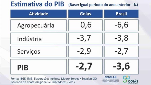Segundo o IMB, a estimativa preliminar aponta que o PIB de Goiás chegou a R$ 178,9 bilhões em 2016. Para 2017, diz a Segplan, a perspectiva é de um cenário mais favorável, com a alta nos preços das commodities, a recuperação da produção agrícola e industrial e o crescimento das exportações e geração de novos postos de trabalho.