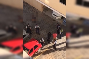 Nos vídeos divulgados pelos vizinhos, é possível ver policiais negociando com Wesley Mâncio, que efetuou disparos de dentro do apartamento.