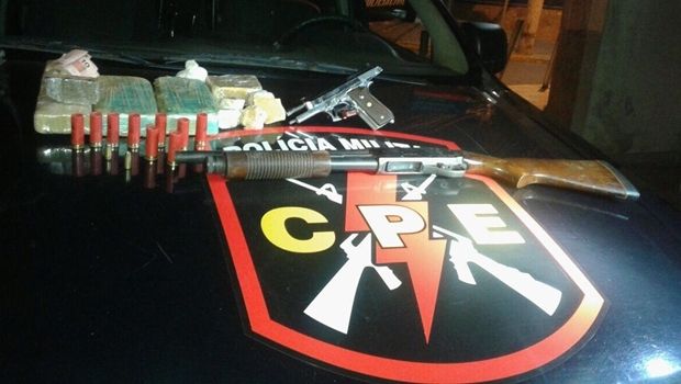 Ao indicar o local onde escondia as drogas, em sua residência, a CPE encontrou aproximadamente três quilos de crack e um de maconha. Além disso, foram encontradas uma espingarda Gauge 12 e uma pistola Taurus 40, que estavam escondidas debaixo de um colchão em um quarto da casa.