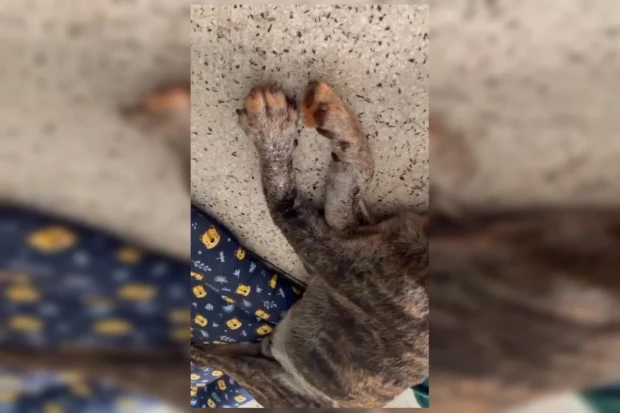 Após muita insistência, Tigrão consegue se desvencilhar, mas não consegue andar sozinho devido à gravidade dos ferimentos. Conforme as imagens, o cão cambaleia pela rua de terra, completamente desnorteado, tentando se refugiar.