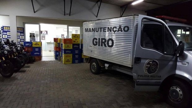 O condutor já havia sido detido por roubo e pelo uso de gás tóxico ou asfixiante; O passageiro tinha passagem por receptação. O Giro realizou diligências e encontrou, em uma residência, 125 caixas de cerveja, R$ 3.200,00 em dinheiro, uma prensa e vários objetos, como rótulos e tampas de garrafas.