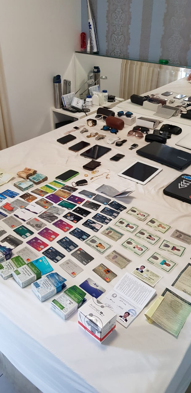 Em um apartamento, localizado no Jardim Goiás da capital, policiais civis encontraram diversos artigos de luxo, bem como cartões de crédito, documentos falsos e placas de veículos supostamente clonadas.