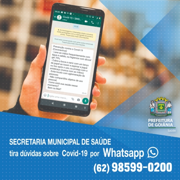 A Secretaria Municipal de Saúde de Goiânia (SMS) disponibilizou um contato de Whatsapp para a população tirar dúvidas sobre a Covid-19.