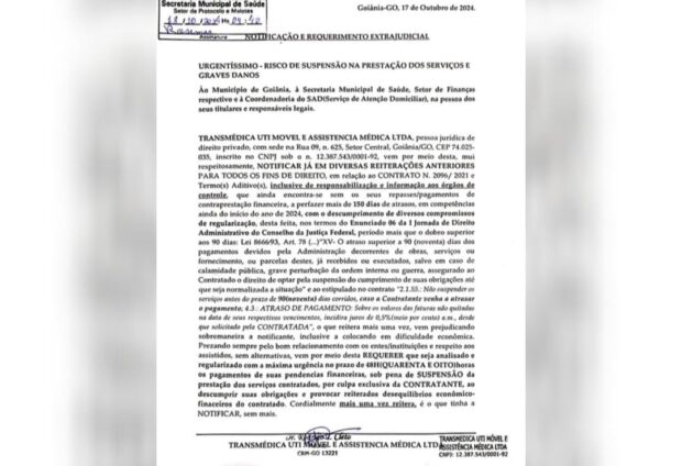Ao menos 26 pacientes que necessitam de atendimentos de saúde na modalidade home care podem ficar sem atendimento a partir de segunda-feira, 21, em Goiânia. A prefeitura da capital foi notificada sobre a suspensão dos atendimentos nesta sexta-feira, 18, pela empresa Transmédica UTI Móvel e Assistência Médica LTDA, que alegou falta de repasse por parte da Secretaria Municipal de Saúde (SMS).