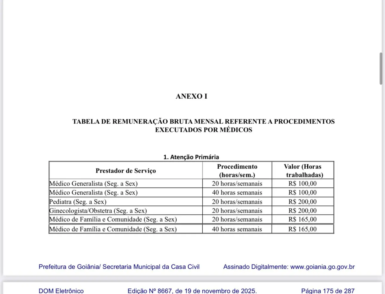 Segundo a gestão, Goiânia pagava cerca de 30% acima dos valores praticados na Região Metropolitana e em outras capitais. A redução, de acordo com a SMS, geraria economia estimada de R$ 2 milhões mensais e permitiria ampliar o número de profissionais.
