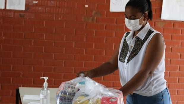 A distribuição da merenda escolar teve início na última sexta-feira, 17. No primeiro momento, foram priorizadas famílias em vulnerabilidade social que foram contempladas com kits montados com estoque remanescente das instituições.