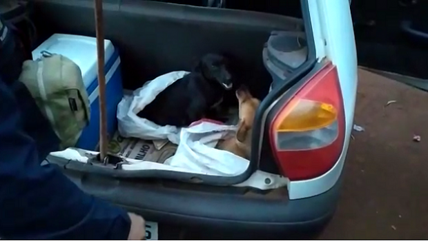 Agentes da PRF realizavam uma fiscalização de rotina quando abordaram um Fiat Palio. No porta-malas do veículo, foram encontrados dois sacos plásticos amarrados com cordas que prendiam dois cães. Ao abrir os sacos, os animais estavam bem debilitados, extremamente ofegantes e cambaleantes. Um deles chegou a ficar inconsciente e outra fêmea estava gestante.