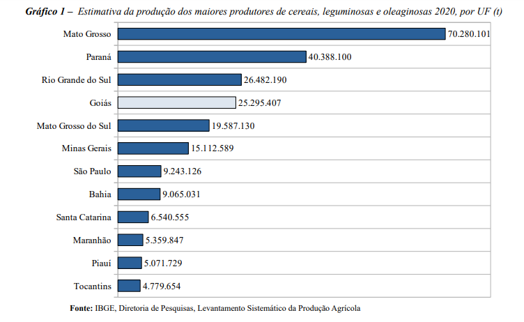 Com esse resultado, o estado de Goiás se aproxima do Rio Grande do Sul, que é o terceiro maior produtor no ranking nacional. O estado gaúcho sofreu uma quebra de safra de 23,4% neste ano devido a problemas climáticos.