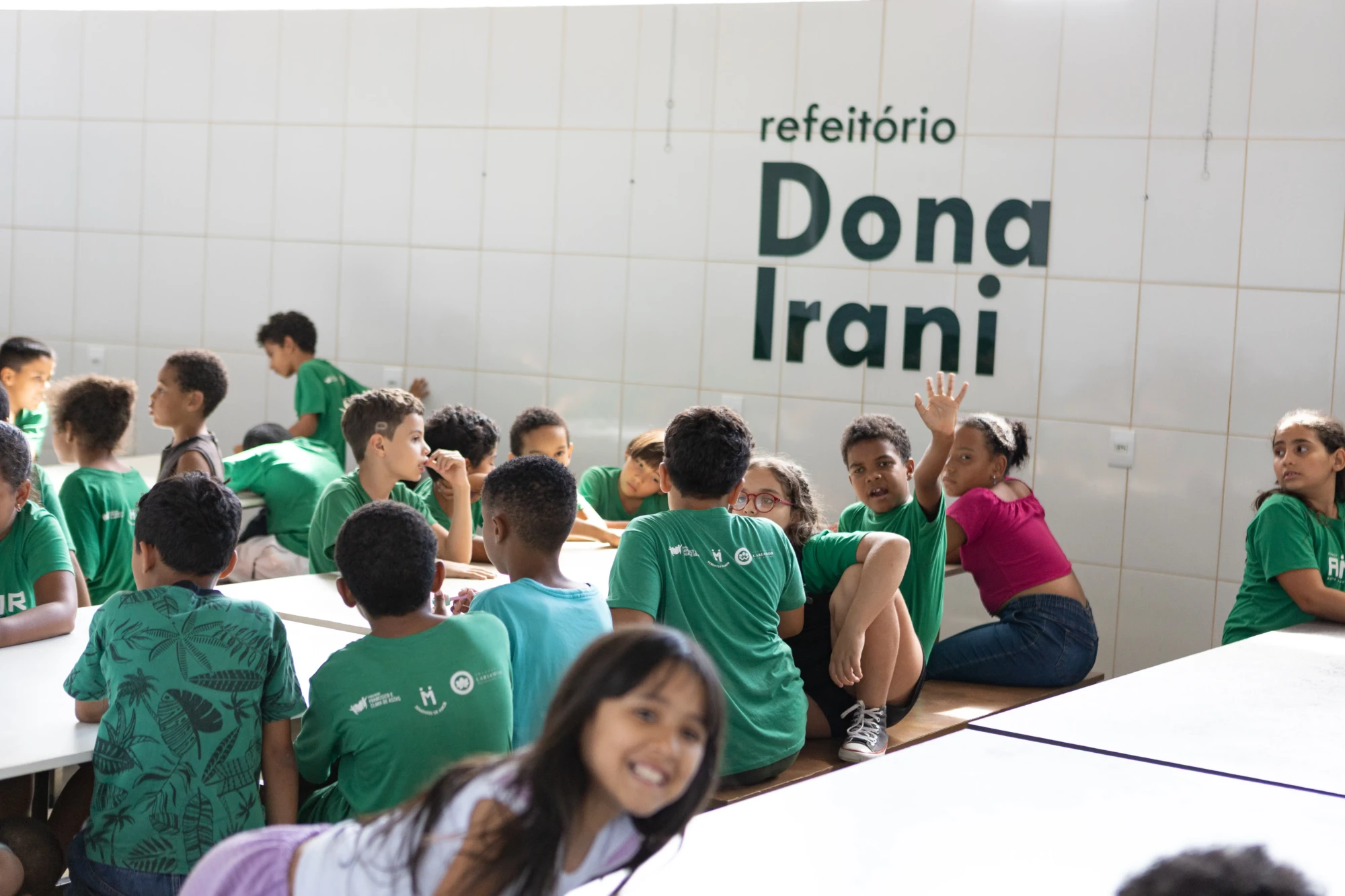 A estrutura foi pensada para permanência diária. O espaço conta com salas de atividades, refeitório e oferta de refeições ao longo do dia. “As crianças tomam café da manhã, almoço e lanche. De manhã, a maioria almoça aqui e depois vai para casa. À tarde, alguns já vêm alimentados, mas muitos chegam direto da escola e almoçam aqui”, explica. Há ainda uma horta comunitária, cultivada pelas próprias crianças. “Eles plantam, colhem, acompanham. É uma festa quando a horta produz”, diz.
