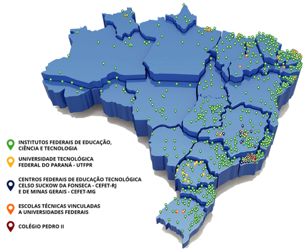 Atualmente, a Rede Federal de ensino conta com cerca de 659 unidades de ensino vinculadas aos Institutos Federais. Isso inclui: 38 institutos federais de educação, ciência e tecnologia; 2 centros federais de educação tecnológica (Cefet); 23 escolas técnicas vinculadas às universidades federais; o Colégio Pedro II, com seus respectivos campus; e a Universidade Tecnológica Federal do Paraná (UTFPR).