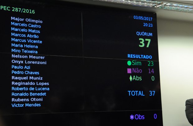Votaram contra PT, PCdoB, PSOL, Rede e PDT. Partidos da base aliada, como Solidariedade (SD), PHS, Pros, PSB, PMB, PSDB, DEM, PMDB, PSC, PP, PRB, PPS, PV e PEN, votaram a favor.