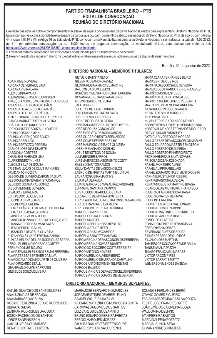 Reunião do Diretório Nacional do Partido Trabalhista Brasileiro – PTB