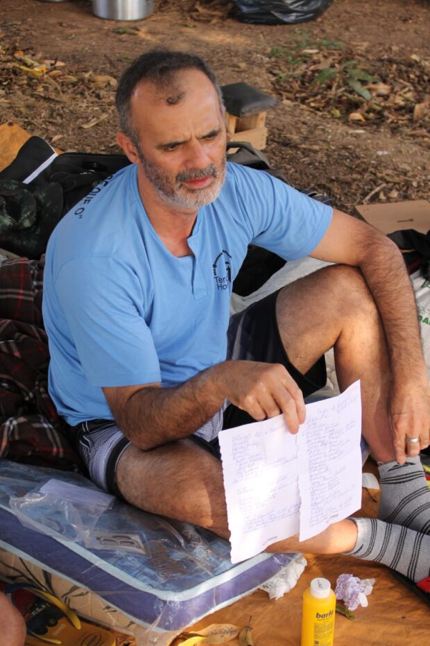 Ele conta que quando chegou na Avenida Anhanguera, perdeu as forças e precisou dormir em Goiânia para finalizar a caminhada no outro dia. “Estava com náuseas, vomitando e não estava com condições. Um dos companheiros ficou para trás e perguntou se poderia fazer alguma coisa para ajudar. Eu disse que quando precisava andar de ônibus, minha mãe me dava um limão que eu furava e ia cheirando para passar os enjoos”, recorda.