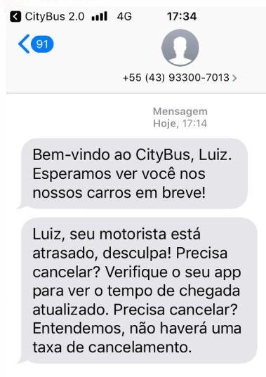 Porém, já no local combinado para embarcar, a corrida foi cancelada e reativada três vezes, até que, na quarta vez, um motorista aceitou o caminho e o veículo chegou cerca de 19 minutos – margem de 5 minutos de atraso.