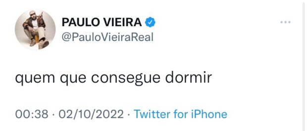 O humorista Paulo Vieira usou a rede do passarinho azul para questionar: “Quem que consegue dormir?’’