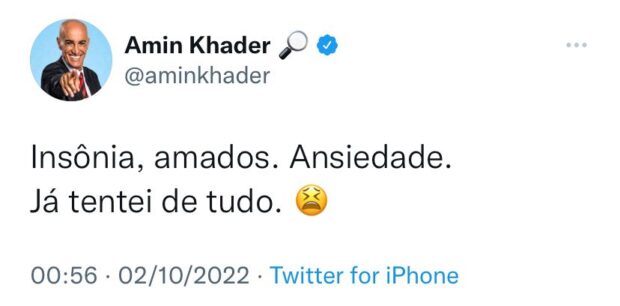 Na virada de sábado para domingo alguns famosos publicaram nas redes sociais o sentimento em relação ao resultado das eleições. O jornalista Amin Khader comentou: “Insônia, amados. Ansiedade. Já tentei de tudo.”