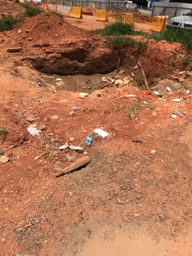 Sacos plásticos, copos descartáveis, garrafas pets e toda espécie de lixo que foram jogada nas ruas e carregadas pelas chuvas, agora entopem as crateras abertas na construção daquele que seria o corredor ligação das regiões norte e sul de Goiânia.
