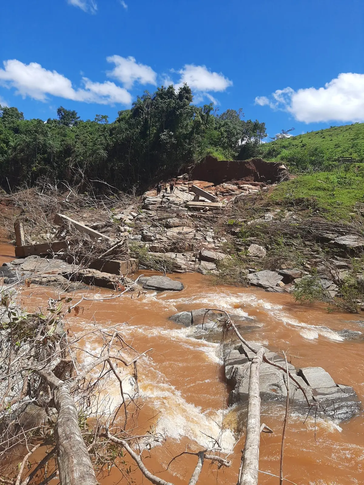 A última pinguela, também construída pela própria população há cerca de dois anos, não resistiu à cheia registrada na última semana e foi novamente levada pela água. O problema, no entanto, começou em 2021, quando a ponte original de alvenaria foi destruída por uma grande enchente. Desde então, os moradores convivem com o isolamento, improvisações sucessivas e a falta de respostas do poder público.