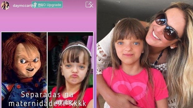 Em sua conta no Instagram, Day McCarthy comparou a menina ao boneco Chuck, do filme de terror Brinquedo Assassino, dizendo: “Separados na maternidade”. Ela teve sua conta apagada pela própria rede social.
