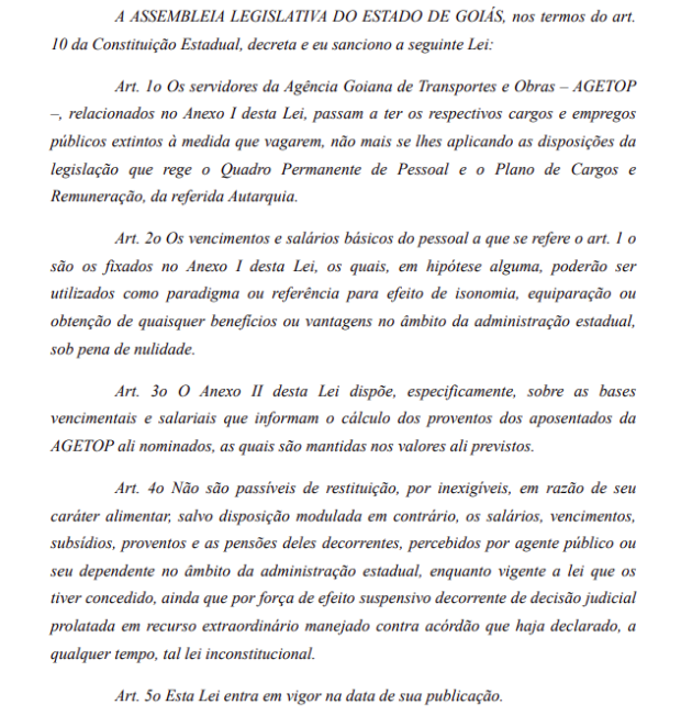 Veja abaixo a lei contestada: