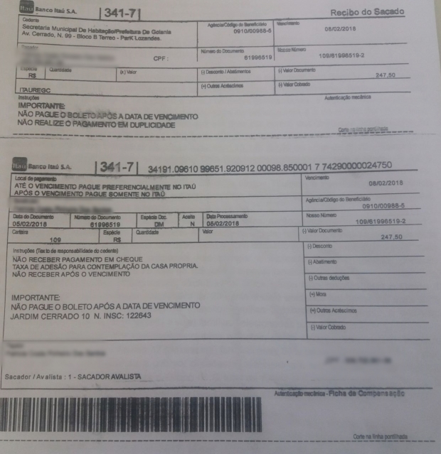 Por meio de nota, a Seplanh pediu para que as famílias beneficiadas não realizem o pagamento da referida taxa, apresentada em boleto do Banco Itaú.