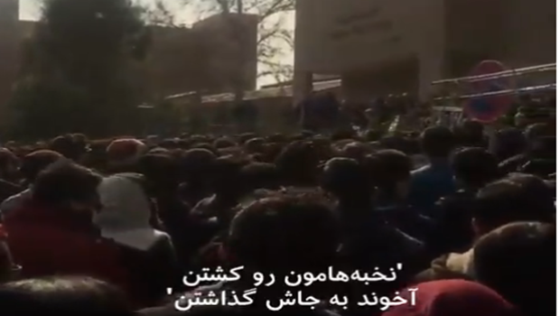 دانشجویان دانشگاه صنعتی شریف امروز دوشنبه ۲۳ دی، در پی ساقط شدن #هواپیمای_اوکراینی با موشک سپاه و در ادامه اعتراضات در شهرهای مختلف ایران، تجمع کردند. در این ویدیو آنها شعار میدهند "نخبههانون رو کشتن، آخوند به جاش گذاشتن".