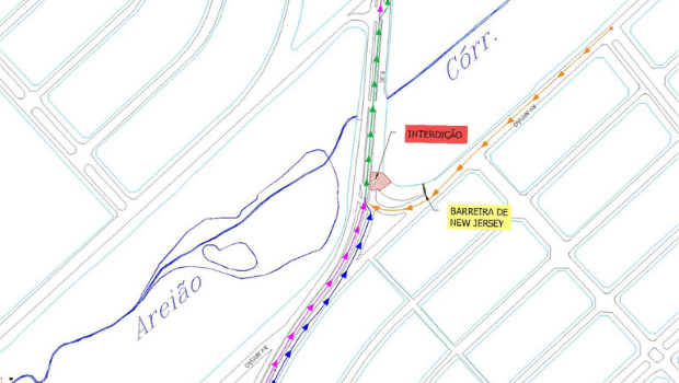 Um trecho da Avenida Areião com a Rua 90, no setor Pedro Ludovico, foi interditado, neste sábado, 18, para execução das redes de dutos semafóricos do BRT Norte-Sul. A previsão, segundo a Secretaria Municipal de Mobilidade (SMM), é que o trabalho seja executado até a próxima segunda-feira, 20.