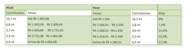 O limite de isenção é aumentado em 31%. Os degraus intermediários da escala também são ajustados, em escala decrescente com o nível de renda. Seis milhões de contribuintes serão completamente desonerados do imposto.